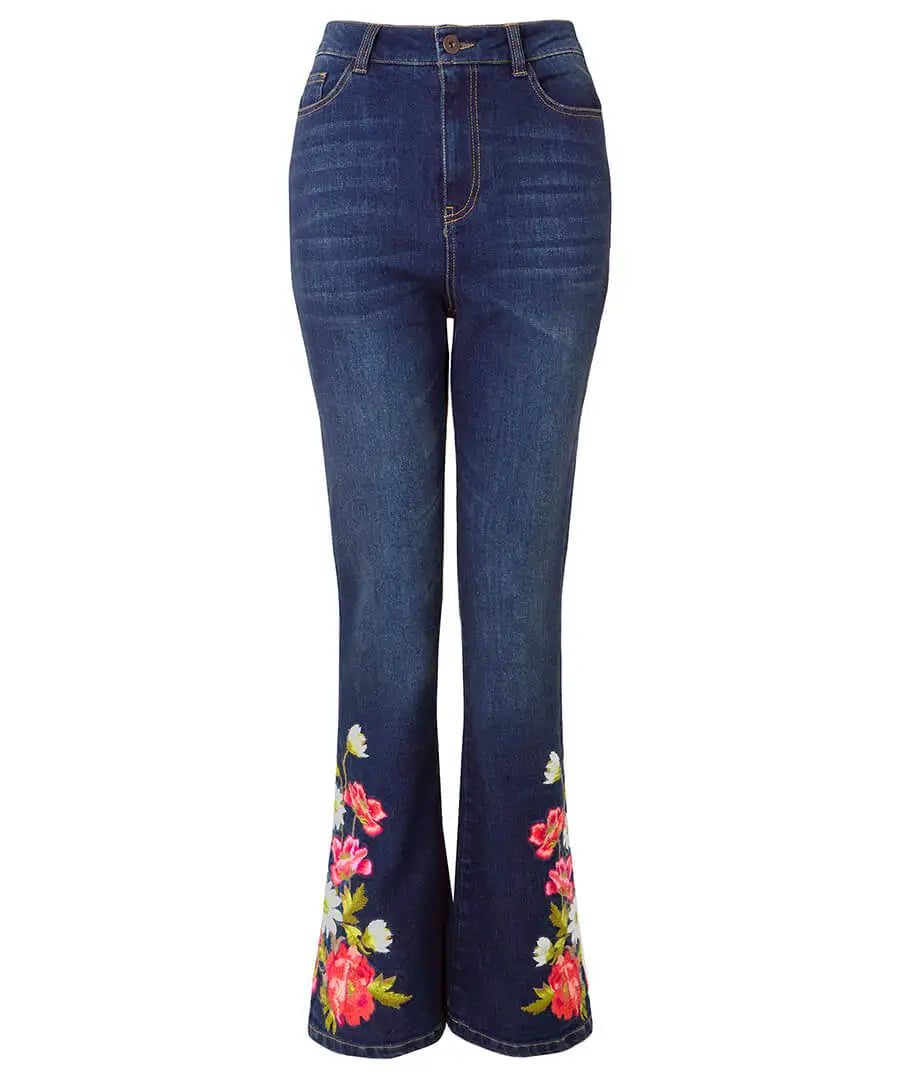 These dark wash embroidered jeans will be the highlight of your wardrobe. All about the flattering fit and floral embroidery, they're full of seasonal flair. The perfect base for an everyday summer outfit, they'll go great with anything from a hat and kimono to boots and a cardi, the possibilities are endless!