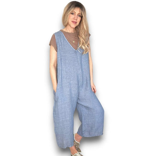Plain V-Neck Linen Jumpsuit