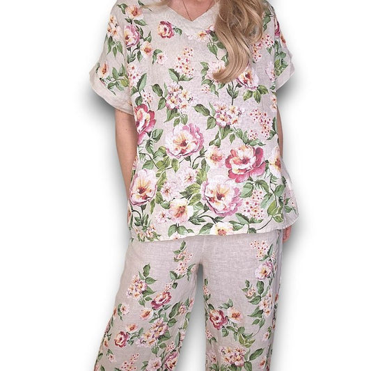 Ruby Blossom Linen Top