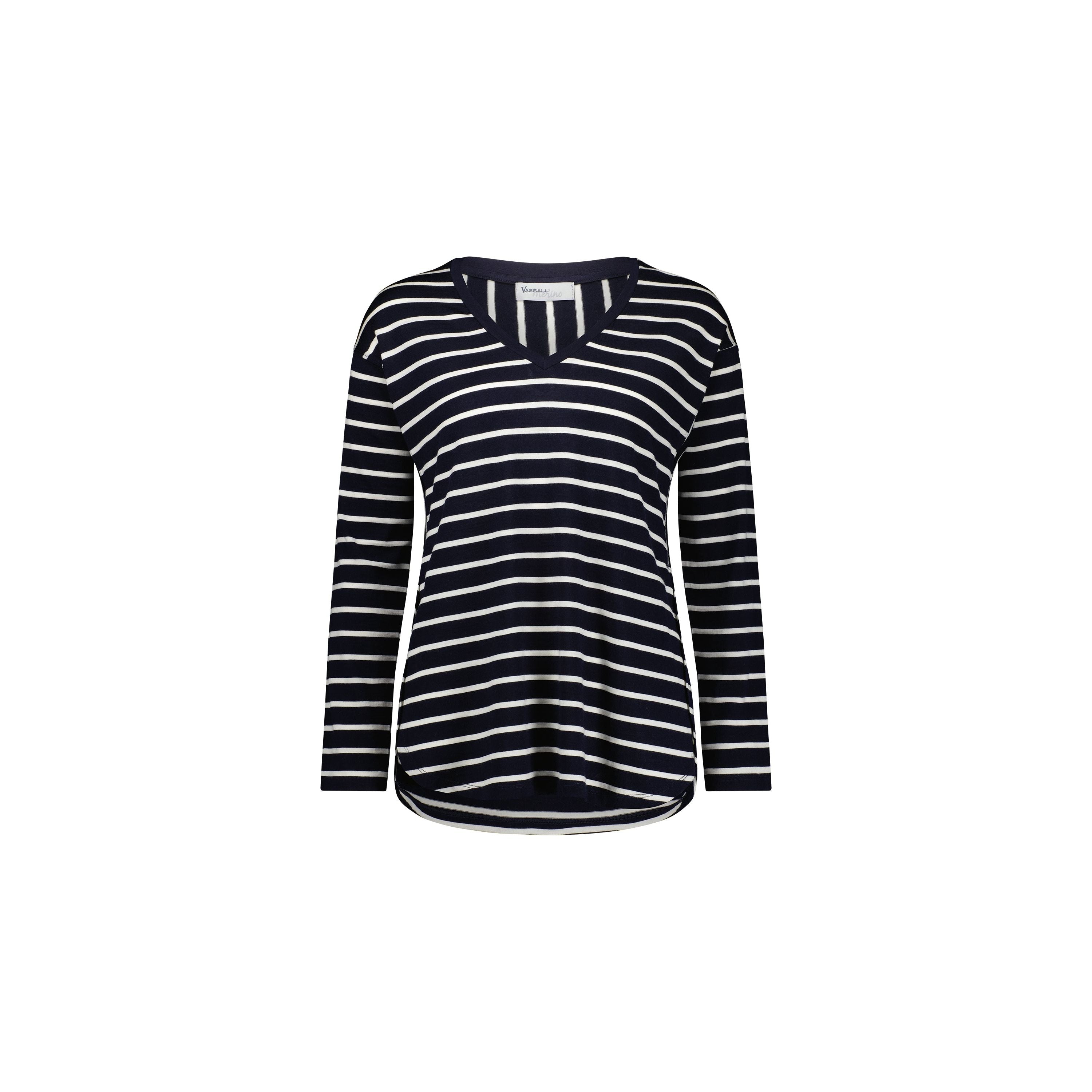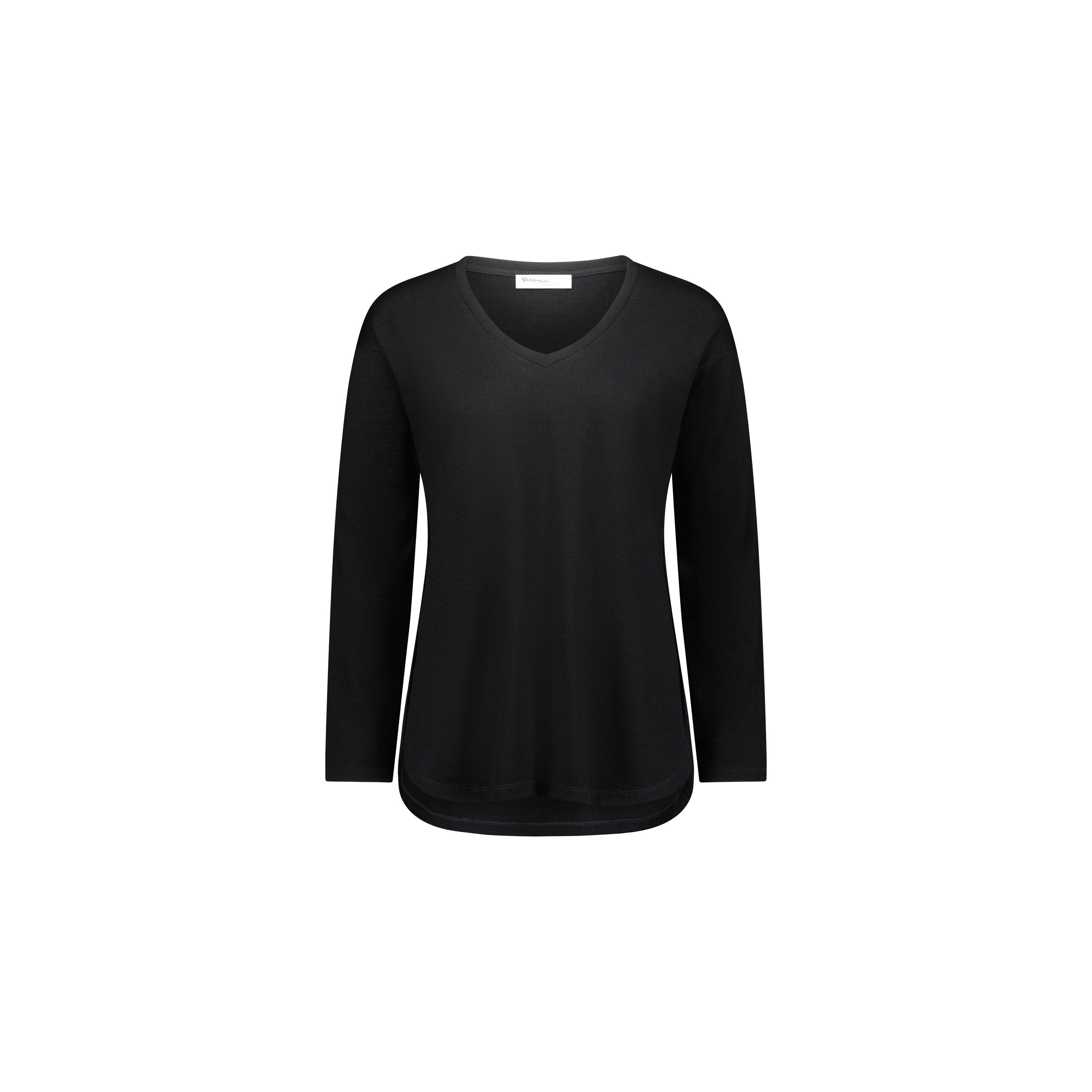 Merino V Neck Top w Rounded Hem