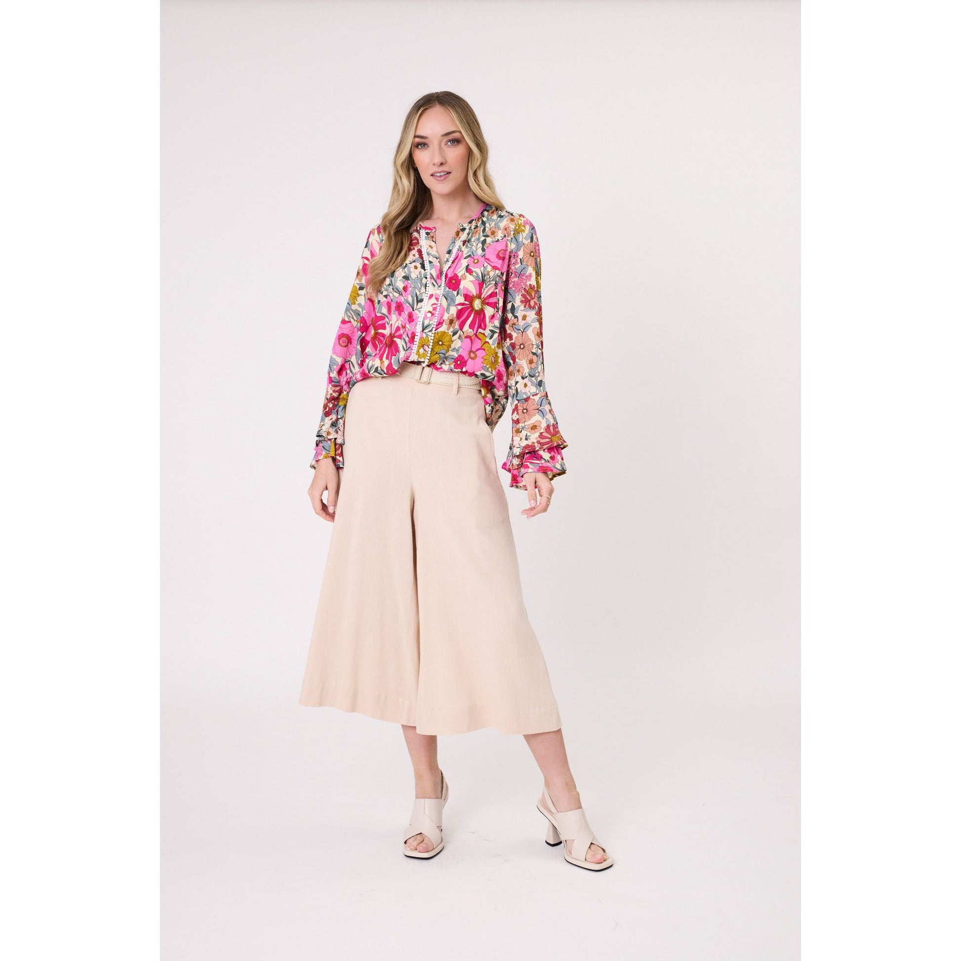 • Garden-inspired floral print in elegant pastel colours, with feminine charm.