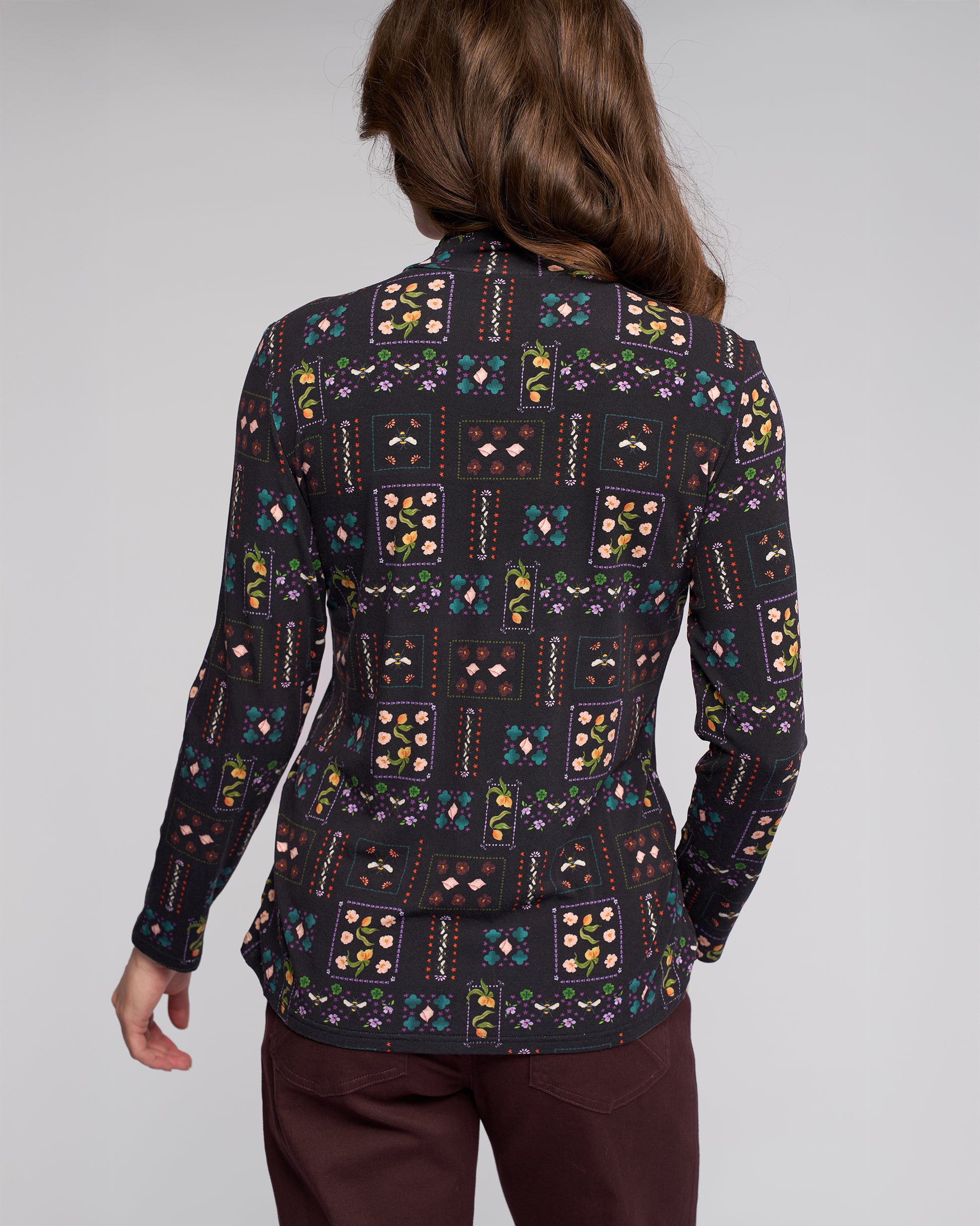 Long-sleeve high-neck top in our Haven print — a dark inky base layered with small-scale geometric and floral elements in a multi-colour palette. Cut in a slim fit from soft stretch jersey, this style works beautifully as a standalone piece or layered under jackets and knits.