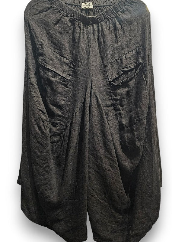 Linen Pant Soft linen elastic waist pants with fun wide layered fronts and sides. *Hand dyed so imperfections are part of the garment’s look*