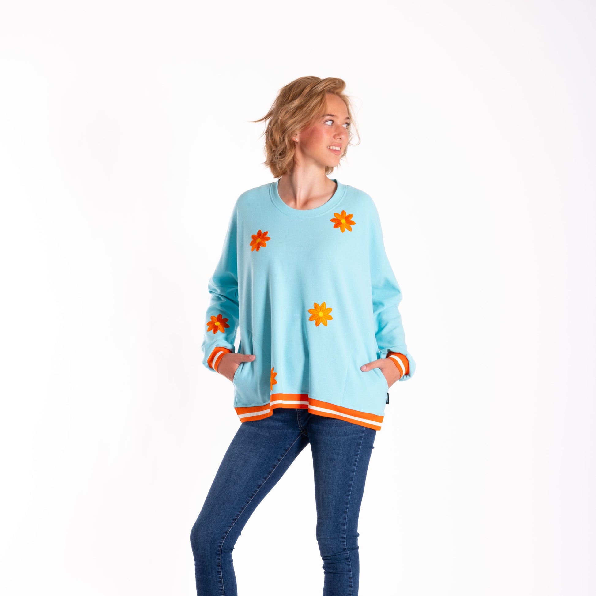 Teal w Orange Flowers Sweatshirt JS25-55