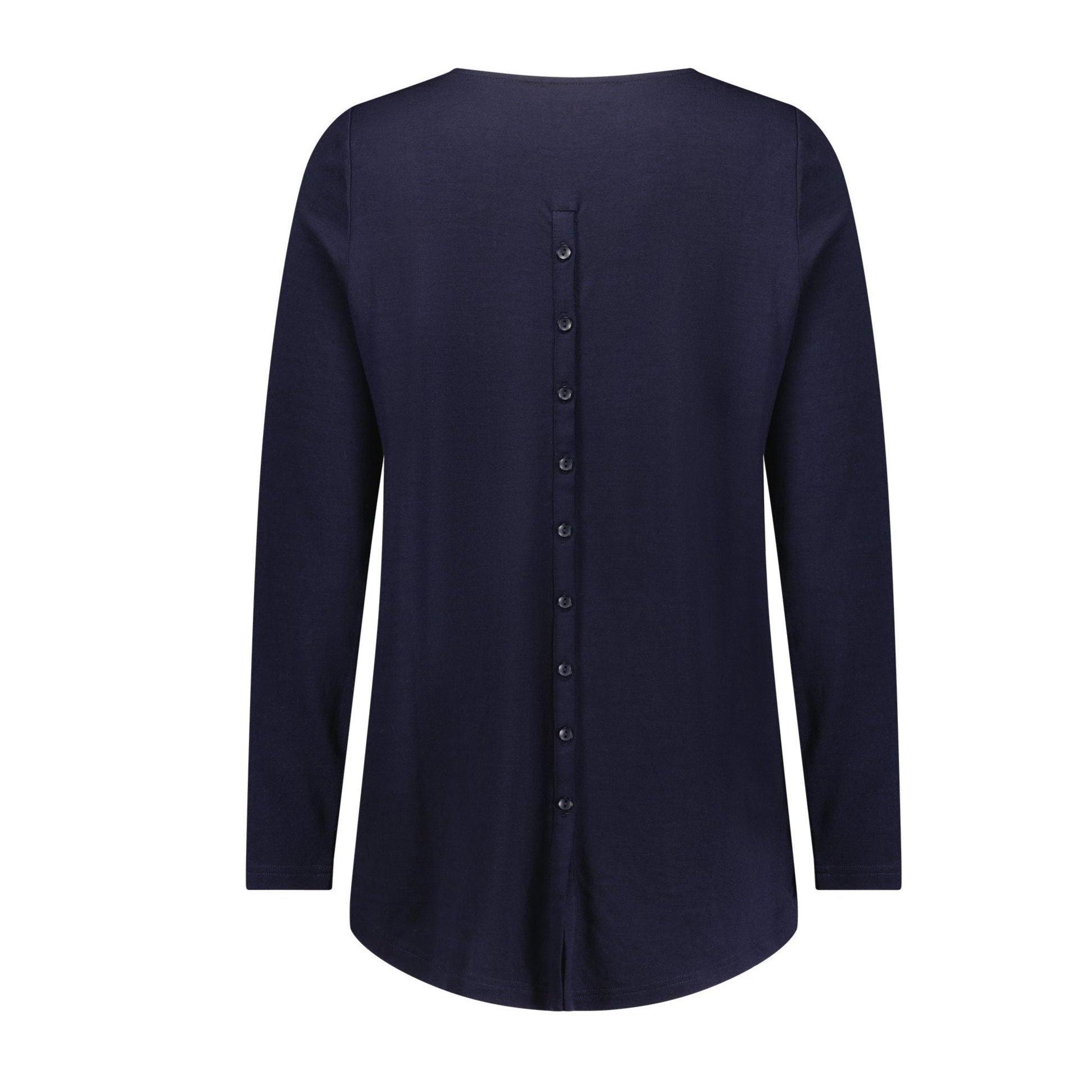 • Merino Long Sleeve Top with Back Button Placket in Black