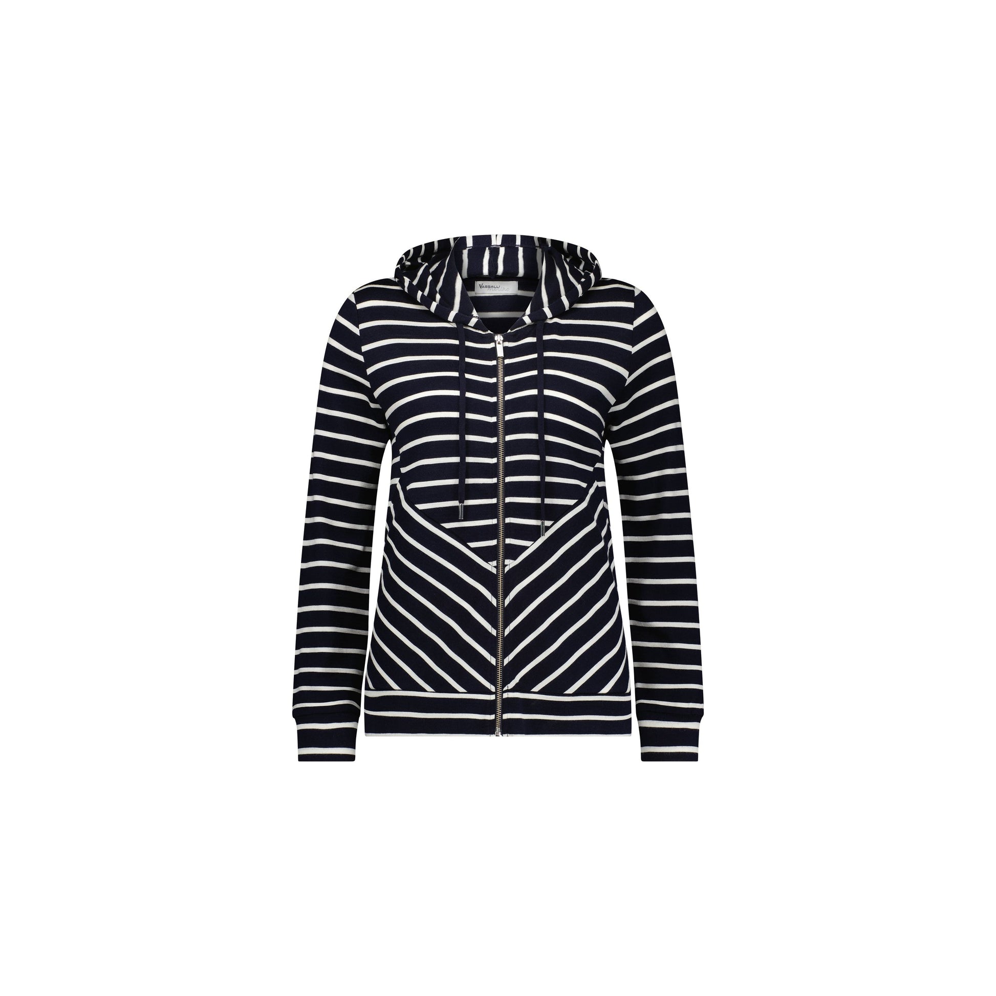 • Vassalli Merino Zip Up Hooded Jacket in Black