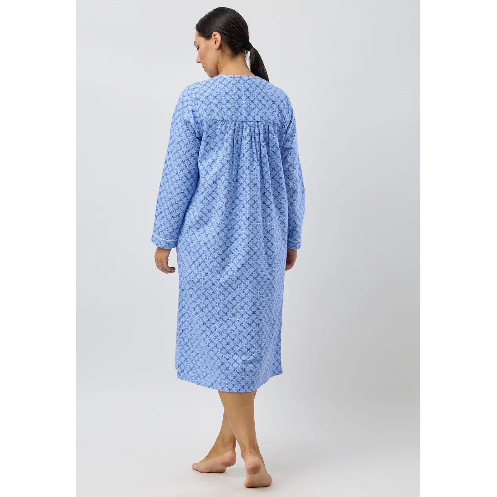Upgrade your sleepwear with our Lattice Nightie. The modern lattice print brings a stylish touch, while the soft warm brushed cotton flannelette ensures maximum comfort. The button opening with pintuck detail adds a touch of elegance to this cosy nightie. Sweet dreams guaranteed.