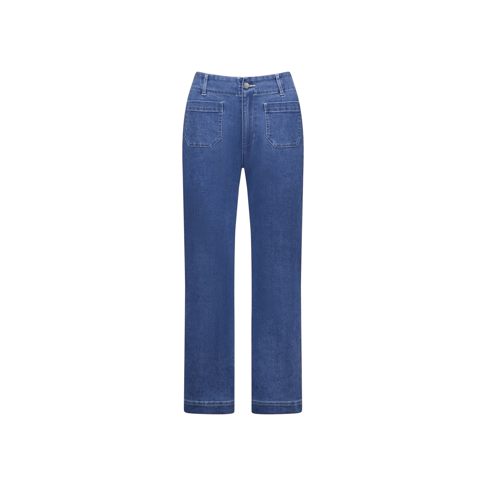 • Vassalli Straight Leg Ankle Grazer Jean with Front Patch Pockets in Blue Hue