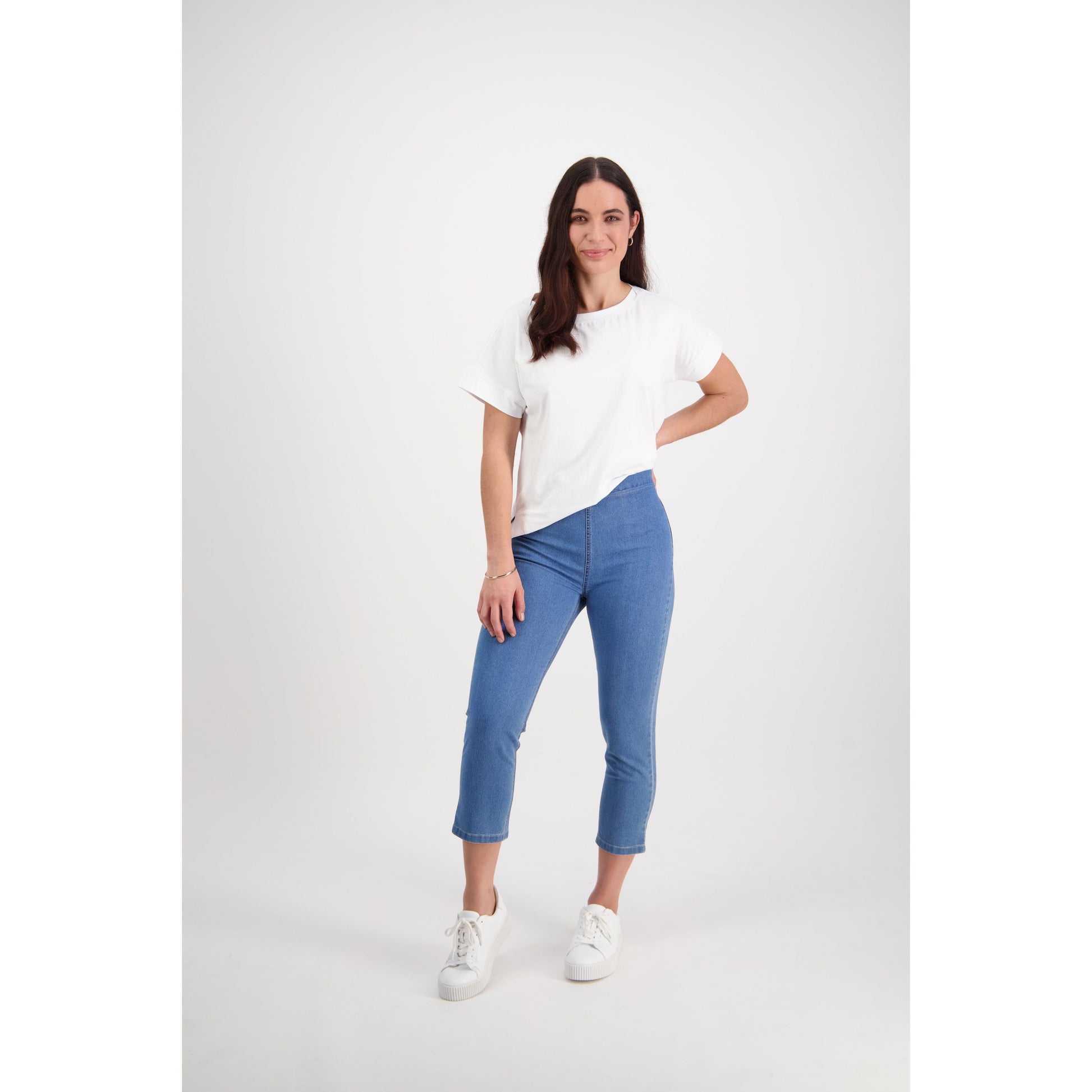 Skinny Leg 7/8 Length Contrast Stitch Denim Pull On