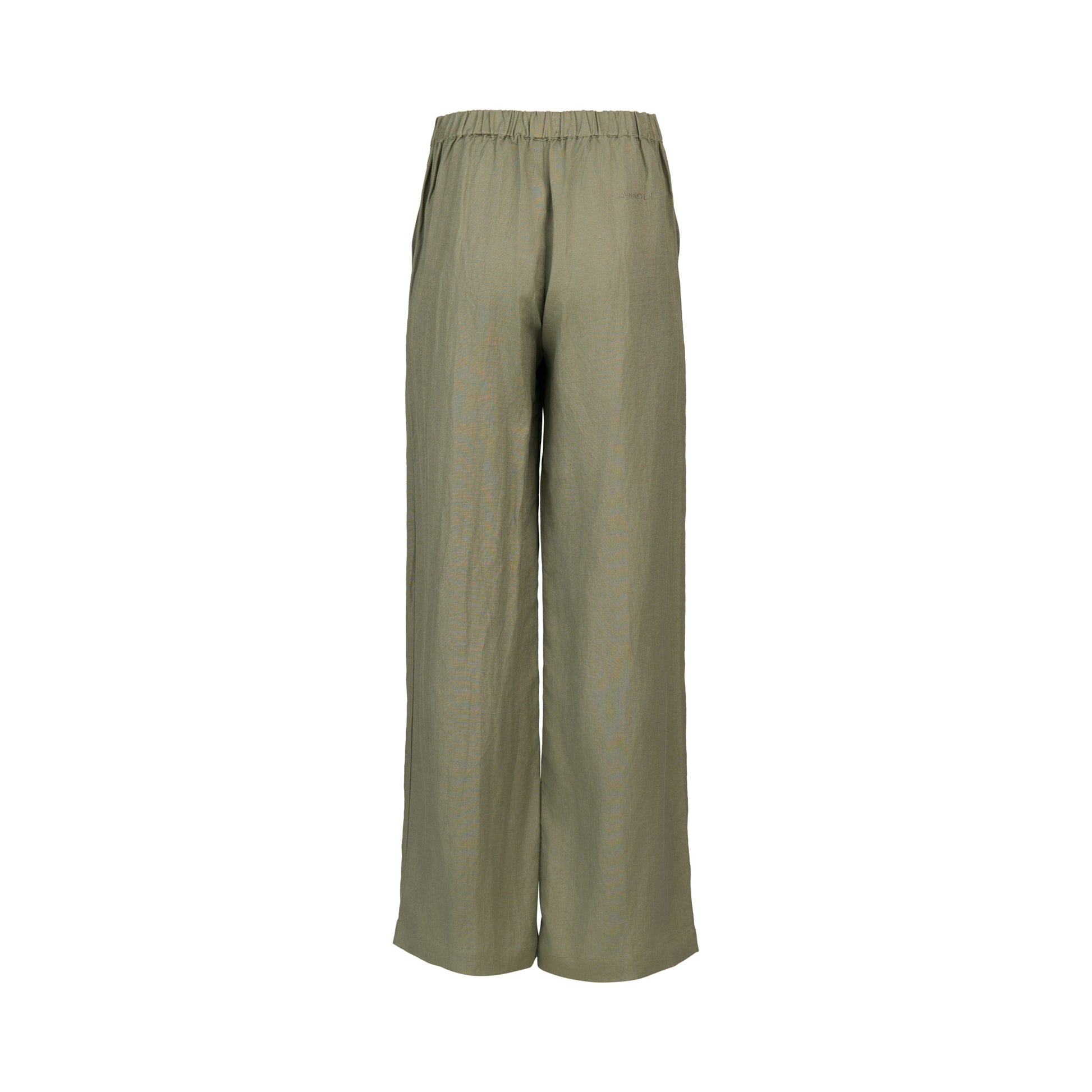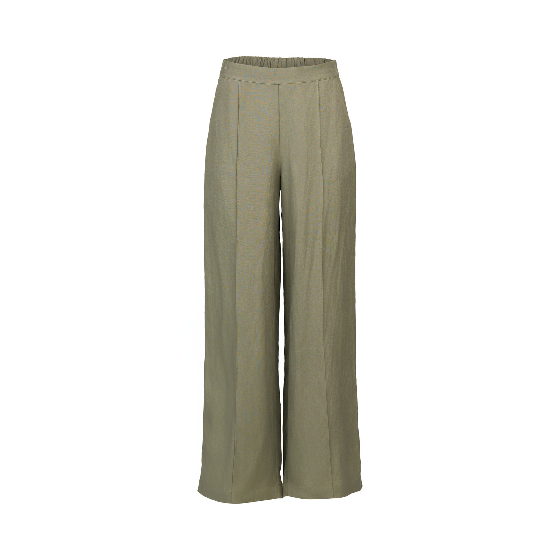 A wide leg, full length pull-on pant made from a soft linen-viscose blend for a breathable, fluid feel. Designed with a flat front, elasticated back waistband, front pintucks to elongate the leg, and angled side pockets.